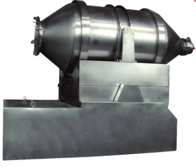 EYH系列二维运动混合机主要由转筒,摆动架、机架三大部分构成。转筒装在摆动架上,由四个滚轮支撑并由两个挡轮对其进行轴向定位。在四个支撑滚轮中,其中两个传动轮由转动动力系统拖动使转筒产生转动;摆动架由一组曲柄摆杆机构来驱动,曲柄摆杆机构装在机架上,摆动架由轴承组件支撑在机架上。